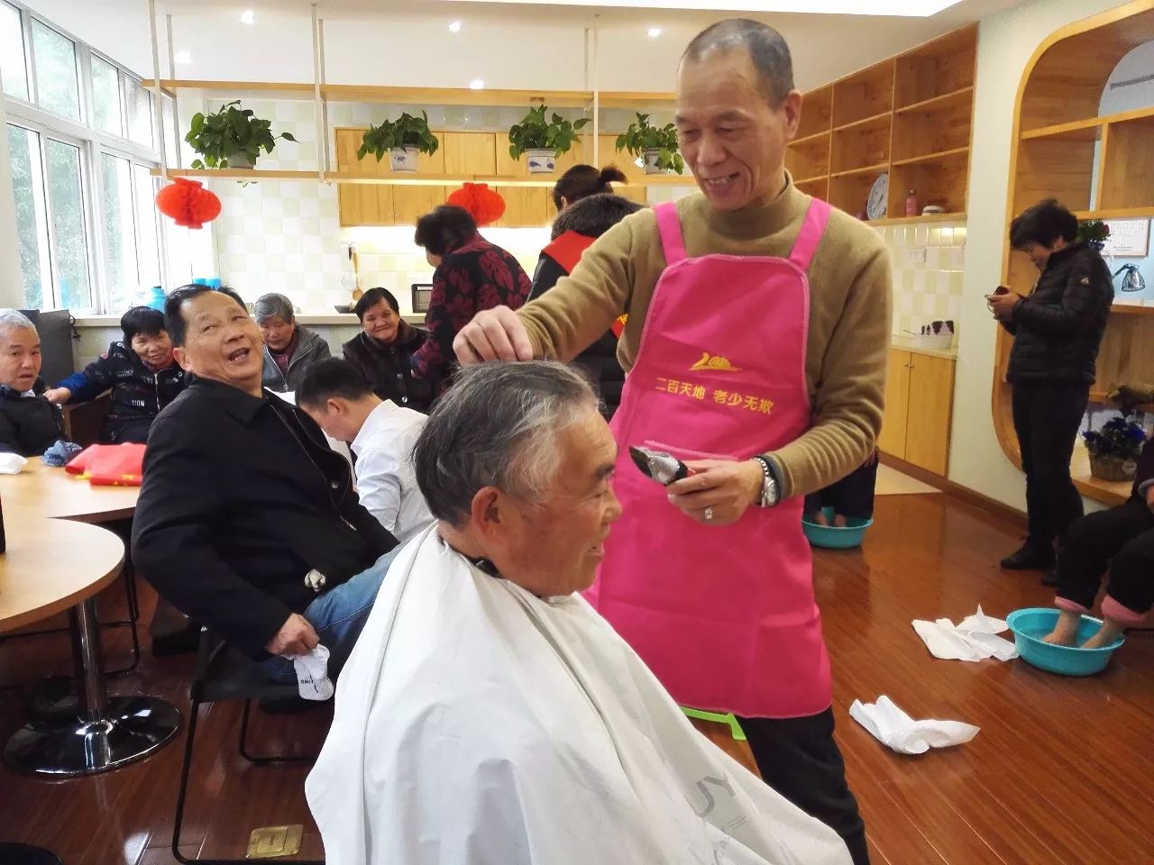 活動開始沒幾分鐘,義務(wù)理發(fā)區(qū)就排起了長長的隊伍,二百的專業(yè)理發(fā)人員“朱師傅”一邊仔細(xì)地為每一位老年者理發(fā),一邊同他們聊家常,爽朗的笑聲充斥著整個大廳。