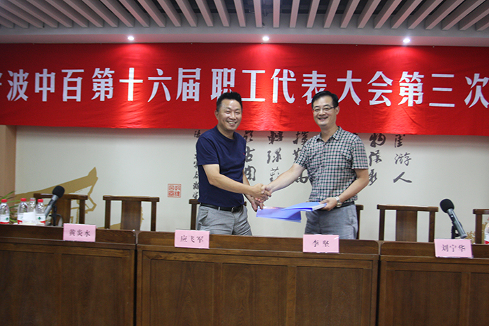 總經(jīng)理應(yīng)飛軍同志作為行政方首席代表與職工方首席代表李堅(jiān)同志簽署《2017年工資集體協(xié)議》和《女職工權(quán)益保護(hù)專項(xiàng)協(xié)議》